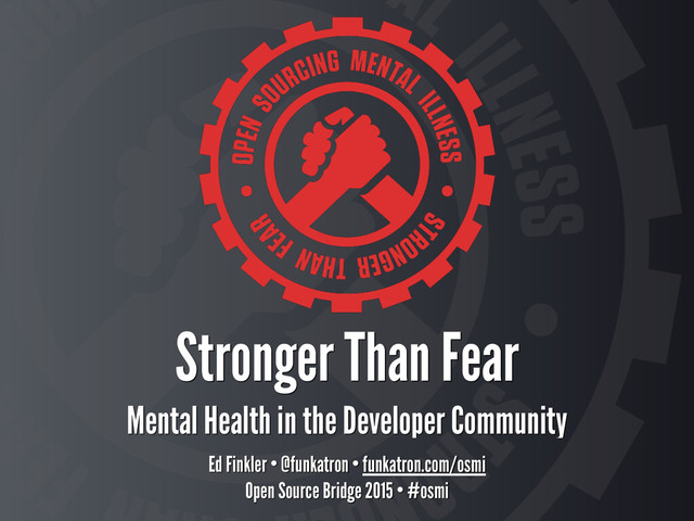 Presented at Open Source Bridge 2015. Learn more about Open Sourcing Mental Illness at http://funkatron.com/osmi. Video: http://j.mp/osmiosb15video