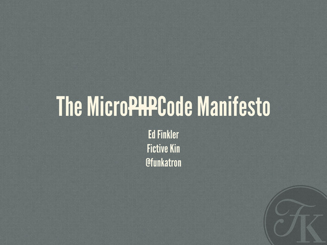 The MicroPHPCode Manifesto Ed Finkler Fictive Kin @funkatron