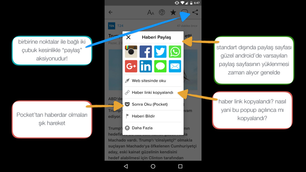 haberdar olmaları şık hareket standart dışında paylaş sayfası güzel android’de varsayılan paylaş sayfasının yüklenmesi zaman alıyor genelde haber link kopyalandı? nasıl yani bu popup açılınca mı kopyalandı?
