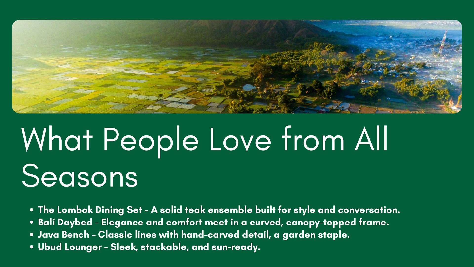 Escape the ordinary and step into outdoor luxury with garden furniture Indonesia by All Seasons – where nature, design, and craftsmanship come together.