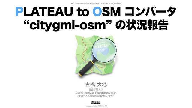 ୈճ̏%ࢢϞσϧͷඋɾ׆༻ଅਐʹؔ͢Δݕ౼Պձ 1-"5&"6UP04.ίϯόʔλ lDJUZHNMPTNzͷঢ়گใࠂ ݹڮେ ੨ࢁֶӃେֶ 0QFO4USFFU.BQ'PVOEBUJPO+BQBO /10๏ਓ$SJTJT.BQQFST+"1"/ NBQPDPODJFSHF $$#:4"