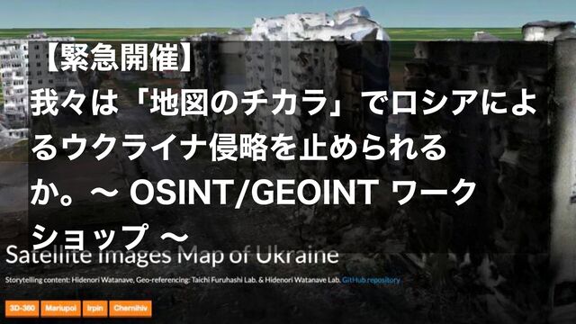 【緊急開催】我々は「地図のチカラ」でロシアによるウクライナ侵略を止められるか。〜 OSINT/GEOINT ワークショップ 〜