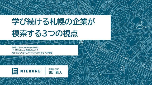 ©Project PLATEAU / MLIT Japan 2023/9/14 NoMaps2023 もう知らないは通用しない!? 知っておくべき「リスキリング」から学ぶ人材戦略 学び続ける札幌の企業が