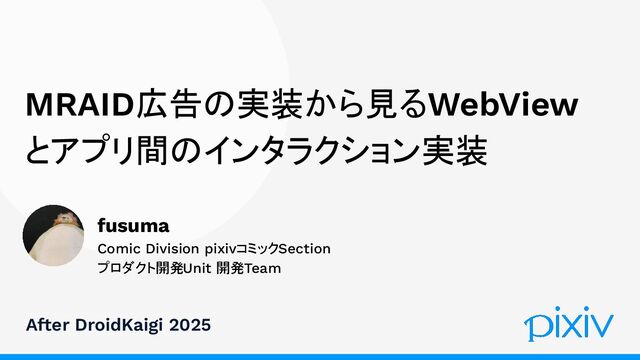 After DroidKaigi 2025 MRAID広告の実装から見るWebView とアプリ間のインタラクション実装 fusuma Comic Division pixivコミックSection プロダクト開発Unit