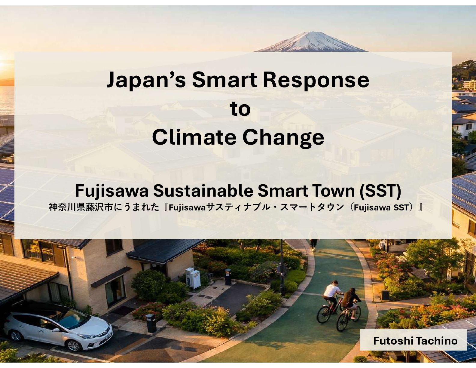 Futoshi Tachino describes Japan's response to climate change through the example of 『Fujisawaサスティナブル・スマートタウン(Fujisawa SST)』.