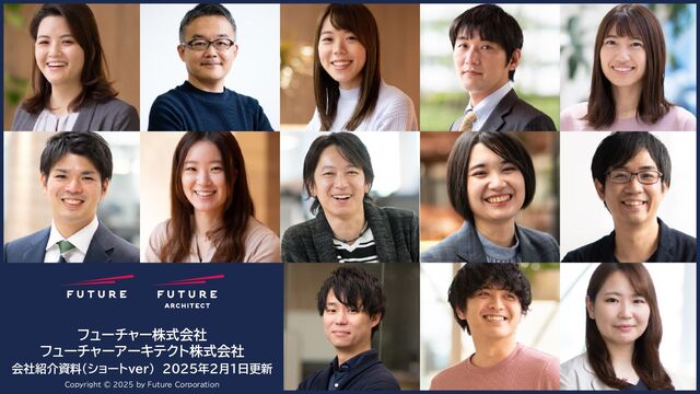 フューチャー/フューチャーアーキテクトの会社紹介資料(ショートver)です。 ご興味をお持ちの方は是非、下記のリンクもご覧ください。