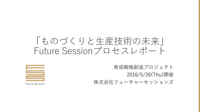 「ものづくりと⽣産技術の未来」 Future Sessionプロセスレポート 育成戦略創造プロジェクト 2016/5/26(Thu)開催 株式会社フューチャーセッションズ