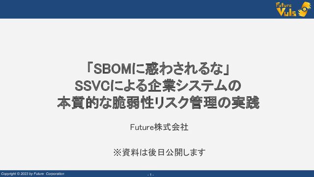 最近話題のSBOMは製造業のサプライチェーンリスク管理に効果を発揮しますが、「企業システムの脆弱性管理」において、SBOMは銀の弾丸ではありません。SBOMにより資産情報やライセンス、脆弱性の表現は可能ですが、それよりも日々の脆弱性管理の運用において重要な「検知した脆弱性の優先順位付け」は提供できません。また、ご存知のように従来のCVSS基本値ベースのトリアージでも運用が回らないという課題があります。この課題を解決するために、脆弱性管理クラウド「FutureVuls」 ( https://vuls.biz/ ) は米CISA推奨の最新リスク管理手法、SSVCを採用。脆弱性、脅威、環境、資産の重要性を総合的に考慮したリスク評価を自動で行い、運用者への指示までを効率的に自動化します。FutureVulsのSSVC機能を実際に全社展開されているユーザ事例も紹介予定です。
