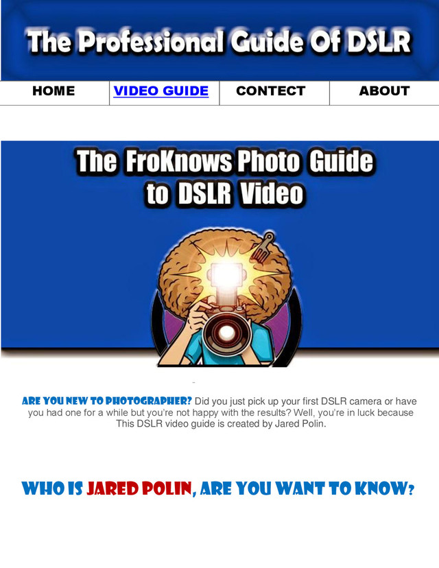 Are you new to Videographer? Are you wanted to build yourself a wedding videographer, sports videographer, or Journalism videographer? For this you just pick up your first DSLR camera or have you had one for a while but you’re not happy with the results? Then this online DSLR videography courses is only for you. , you’re in luck because This DSLR video guide is created by Jared Polin.