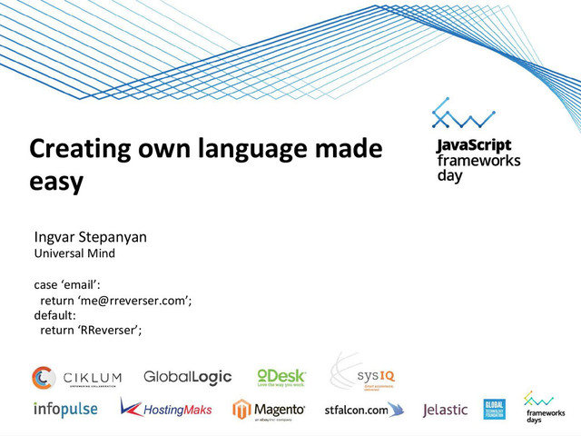 • PEG.js parser generator for JavaScript based on the parsing expression grammar formalism • JS/CC LALR(1) parser generator • OMeta/JS (source) metacompiler for many languages to many targets, including js. • languagejs - PEG parser written in JavaScript with first class errors • Canopy Self-hosting PEG parser compiler for JavaScript, influenced by Ruby parser generators • jsparse PEG by Grandmaster Chris Double • ReParse parser combinator library for Javascript like Haskell's Parsec • p4js Monadic parser library for JavaScript • JSGLR Scannerless, Generalized Left-to-right Rightmost (SGLR) derivation parser for JavaScript • antlr has a javascript target • Cruiser.Parse LL(k) parser • ...