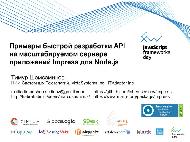 writeInterval: "3s", writeBuffer: 64*1024, fileTypes: [ "access", "error", "debug", "slow" ] } --------------------------------------------------------------- /config/sandbox.js module.exports = { modules: [ 'global', 'console', 'process', 'impress', 'db', 'domain', 'crypto', 'geoip', 'os', 'Buffer', 'stream', 'nodemailer', 'net', 'http', 'https', 'dgram', 'dns', 'url', 'path', 'fs', 'util', 'events', 'iconv', 'querystring', 'zlib', 'async' ]}