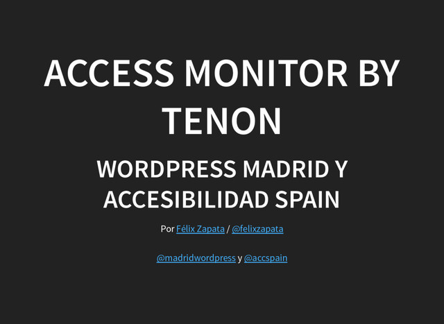 web. Trabajo en . Coorganizador de los grupos meetup , , y . Aerotranstornado: piloto P1 y controlador S3 (aspirante a C1) en la red . GFT WordPress Madrid Accesibilidad Spain AngularJS Madrid Polymer Madrid VATSIM Mi GitHub