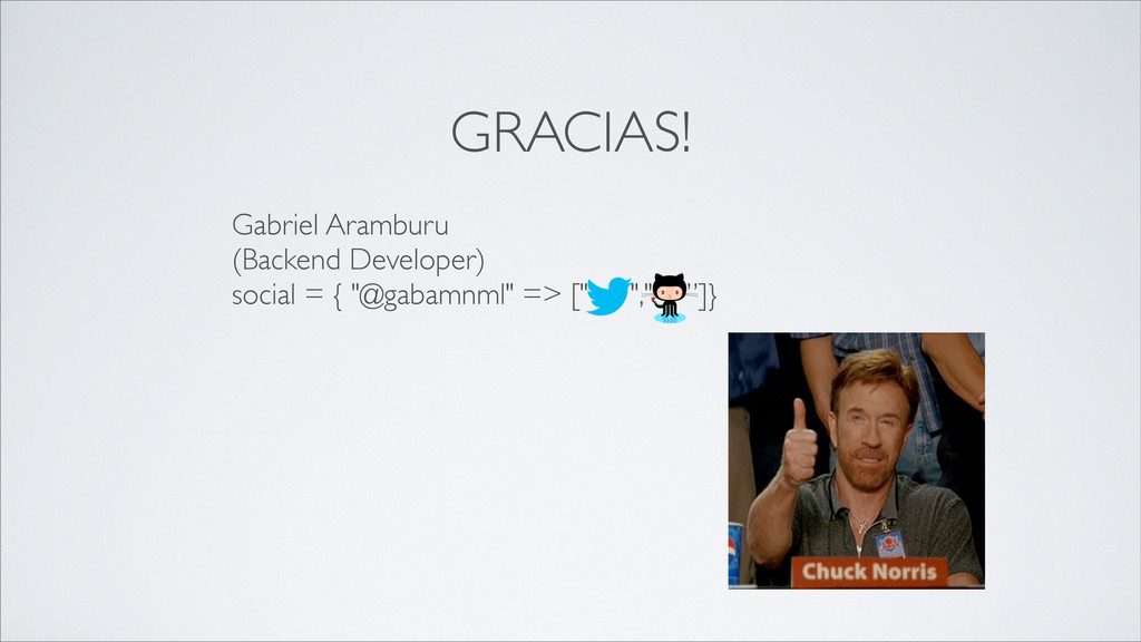 GRACIAS! Gabriel Aramburu (Backend Developer) social = { "@gabamnml" =>
