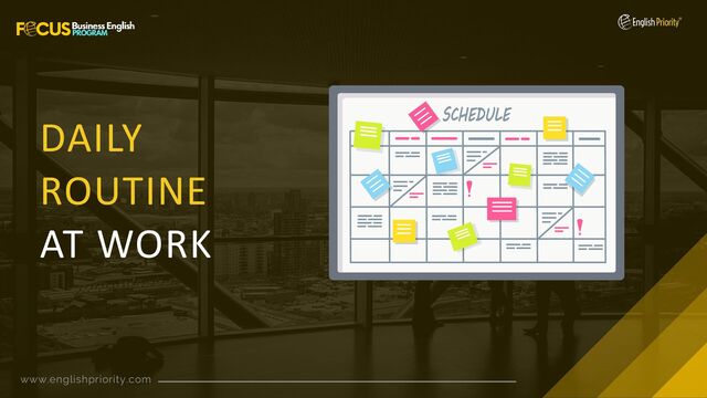 project details. • Throughout the day, I have calls with clients to discuss their needs and provide updates on our progress. • Part of my routine involves leading team meetings to ensure everyone is aligned with our objectives. www.englishpriority.com Include Interactions with Colleagues or Clients: