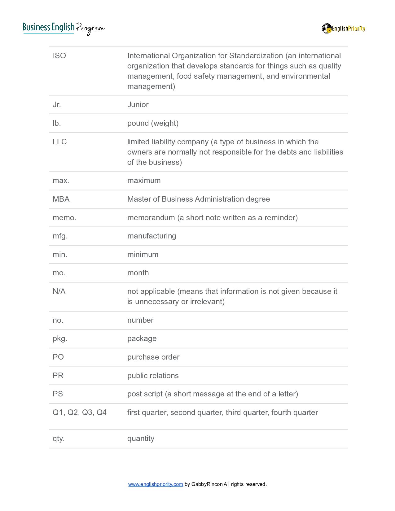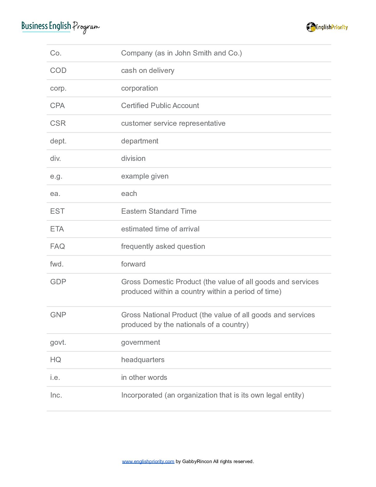 Gabby Rincon - English Priority