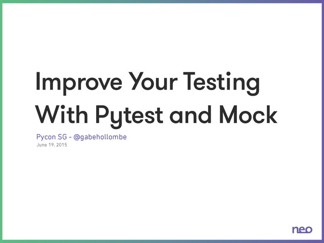 parameterize a test function against a collection of test values • Can be shared between test files via conftest.py • @pytest.fixture(autouse=True) acts as setup/teardown without explicit request by your test functions • You can even test your fixtures (they’re just functions) Fixtures are awesome