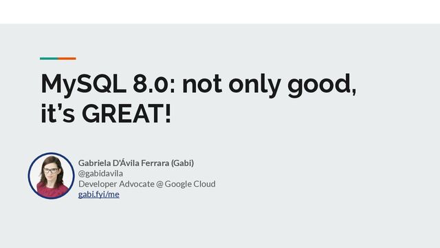 1. MySQL 8.0: not only good, it’s GREAT! Gabriela D'Ávila Ferrara