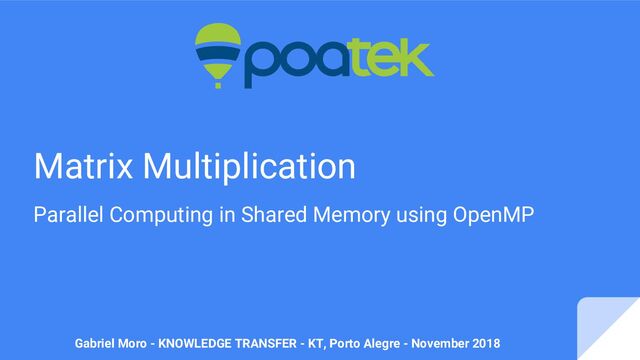 Thanks! https://github.com/tido4410/knowledge-transfer-gbmoro.git Gabriel Moro - Matrix Multiplication - OpenMP -