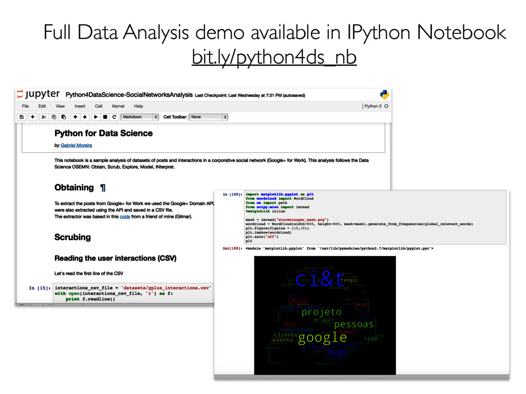 This talk, presented at Python Brasil 11 (2015), demonstrates a complete Data Science process, involving Obtaining, Scrubbing, Exploring, Modeling and Interpreting data using Python ecosystem tools, like IPython Notebook, Pandas, Matplotlib, NumPy, SciPy and Scikit-learn.