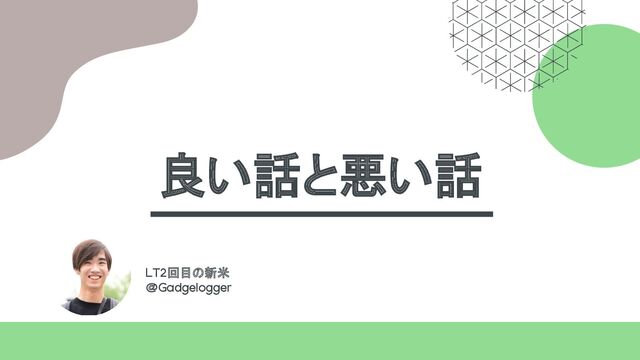 良い話と悪い話 LT2回目の新米 @Gadgelogger