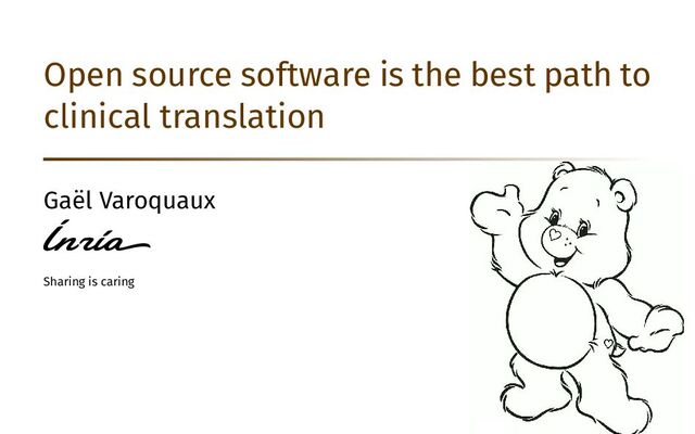Slides from a debate at ICCR 2024 on whether open source or not is the way to go for the radiology community (and to a greater extent clinical decision making).