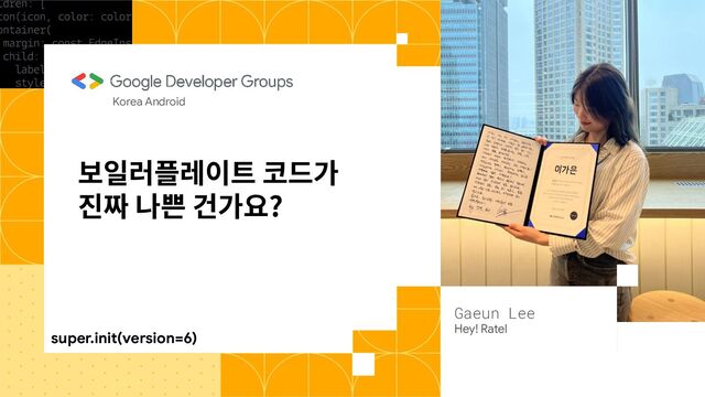 2025 년 GDG Korea Android 행사인 Super.init (version=6) "SOLID와 아키텍처" 워크샵에서 "보일러플레이트 코드"를 주제로 한 토의 자료입니다.
