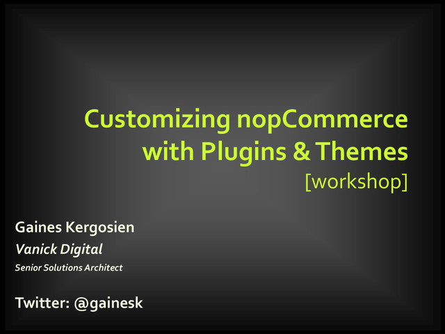 This talk picks up where we left off with Building MVC eCommerce Sites and shows how nopCommerce can be easily customized using plugins and themes without having to modify the original source code. This approach allows for quick and easy upgrades as new versions of nopCommerce are released.