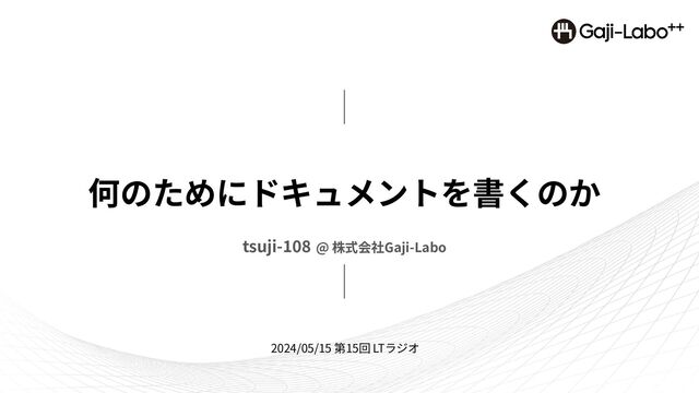何のためにドキュメントを書くのか tsuji-108 @ 株式会社Gaji-Labo 2024/05/15 第15回 LTラジオ