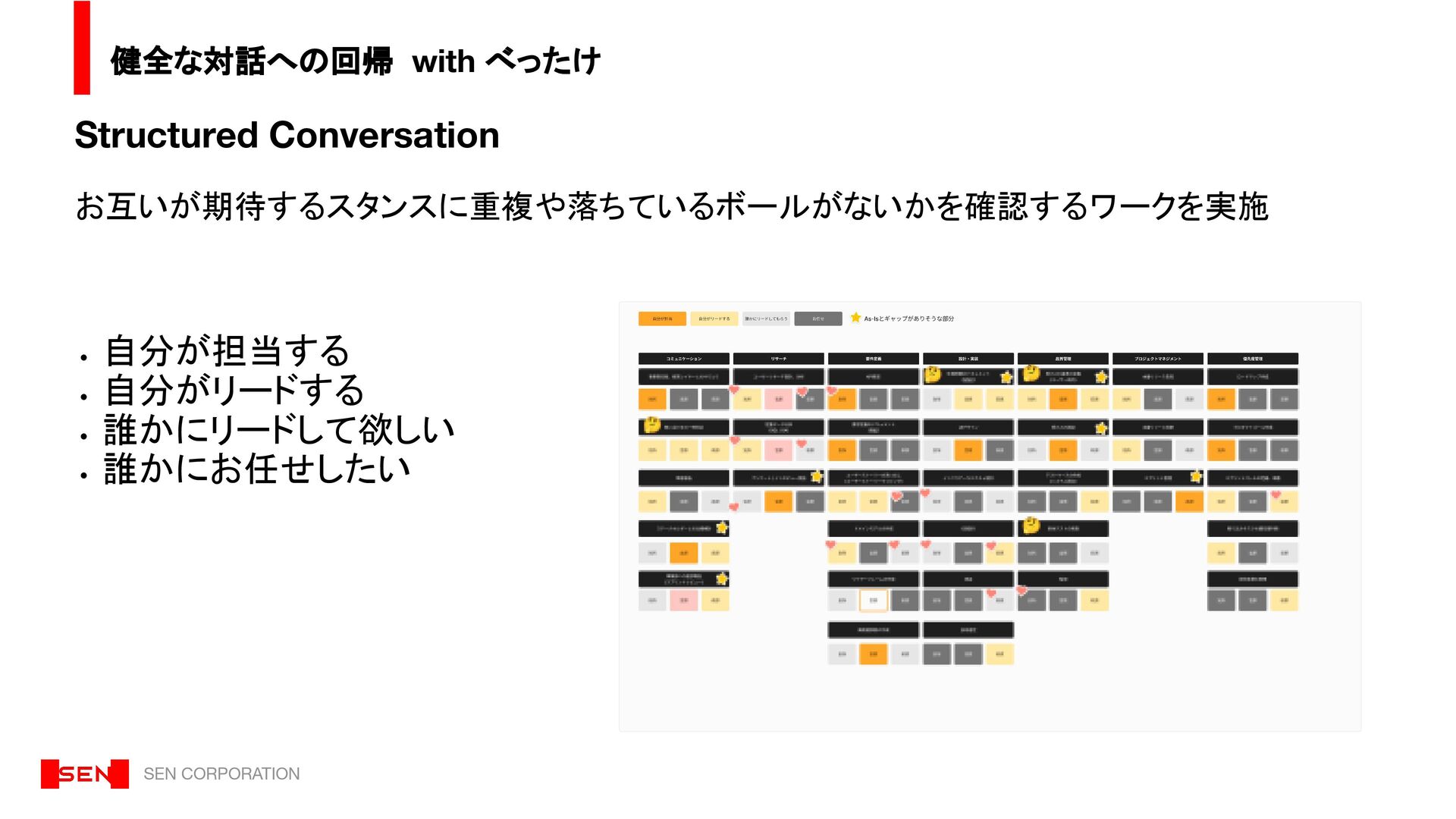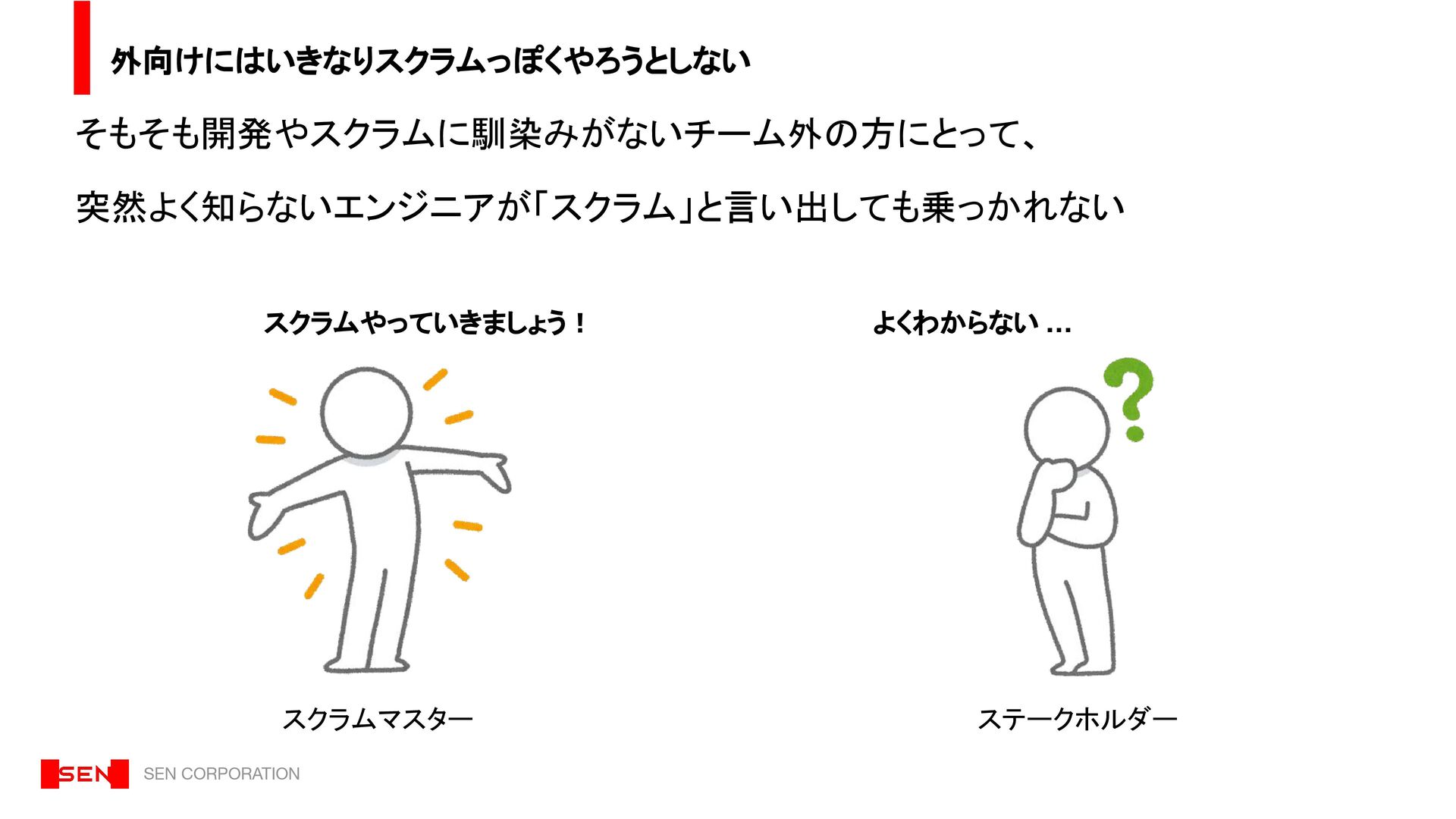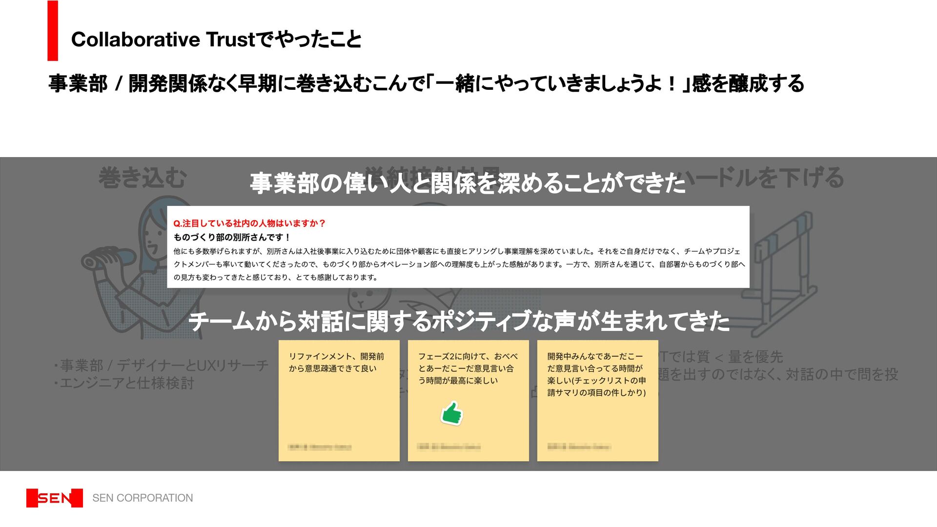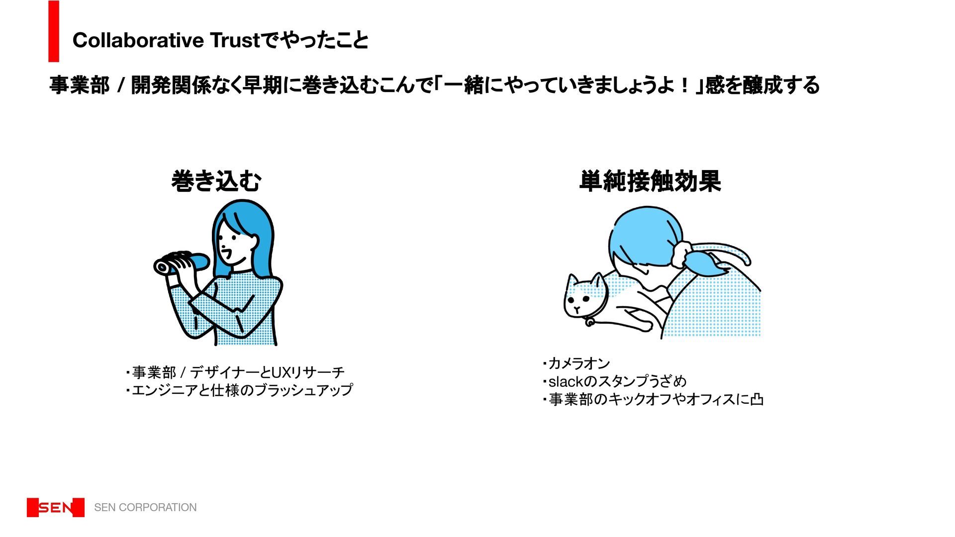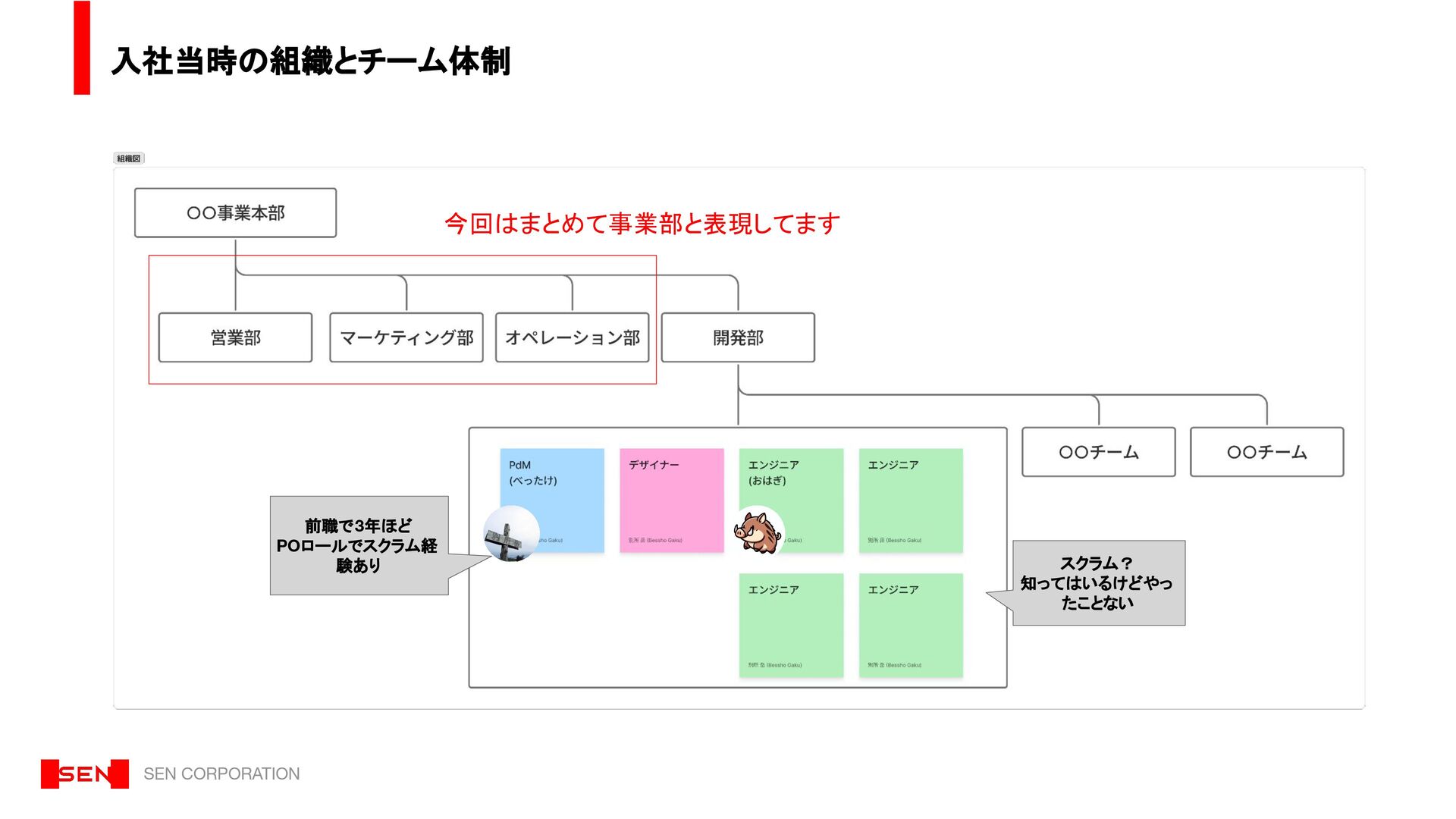 開発企画書 ・「なぜ作るのか?」「期待成果はなに か?」「誰のどんな課題を解決したい のか?」をまとめたドキュメント ・PdMが叩きを作成しステークホルダー / 開発チームと対話しながらブラッ シュアップ・開発検討mtgで必要になる リリース資料 社内向けにリリース内容を 展開するための資料 ・リリース背景/ UIデザイン / 機能概要 / 注意事項などおを記載 ・分割リリースで進めることが多いのでどの順番で何がリリースされるのかを pjt単位でスライドにまとめる ・事業部やエンジニアと認識を合わせるためのペーパープロトタイプとして も活用 SPEC ユーザーストーリー単位で仕 様をまとめたドキュメント リリース資料よりも細かな仕様を記載 (バリデーション / 条件など) ・事業部との要件整理やリファインメントで活用 ・非エンジニアが理解できない内容は記載しない (ER図 / クラス設計 / 技術 選定など) PBI ユーザーストーリーを開発 チームで管理、開発可能な 状態に分解したもの ・SPECのリンク ・受け入れ基準 ・UnReady→Ready→WIP→Doneと いうステータスで管理 ・スプリント開始までにReadyにする ・プランニングで話した内容や技術的な関心事も記載・開発していく中で気に なったことを随時コメントで追加 ・フロー型として扱い重要な情報は別ドキュメントに切り出してリンクのみ記 載