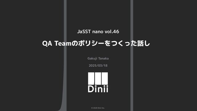 © 2024 Dinii Inc. Gakuji Tanaka 2025/03/18 QA Teamのポリシーをつくった話し JaSST