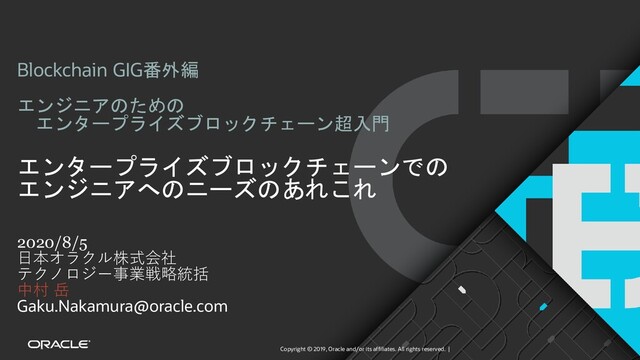 2020/8/5 Blockchain GIG番外編 エンジニアのためのエンタープライズブロックチェーン超入門#3 エンタープライズブロックチェーンでのエンジニアへのニーズのあれこれ で喋った資料 エンタープライズブロックチェーン領域のユースケース、市場拡大の展望と、そこエンジニアに求められることになるであろうスキルについて解説