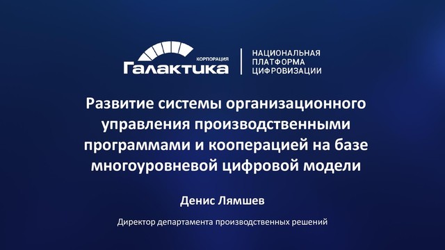 цифровых моделей для развития систем организационного управления Галактика MES (Manufacturing Execution System) Управление производством на уровне рабочих мест Галактика - AMM (Advanced Manufacturing Management) Управление производственными процессами Галактика MCM (Manufacturing cooperation management ) Управление кооперационным производством