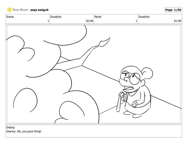 Scene 1 Duration 02:00 Panel 1 Duration 01:00 Dialog Granny:
