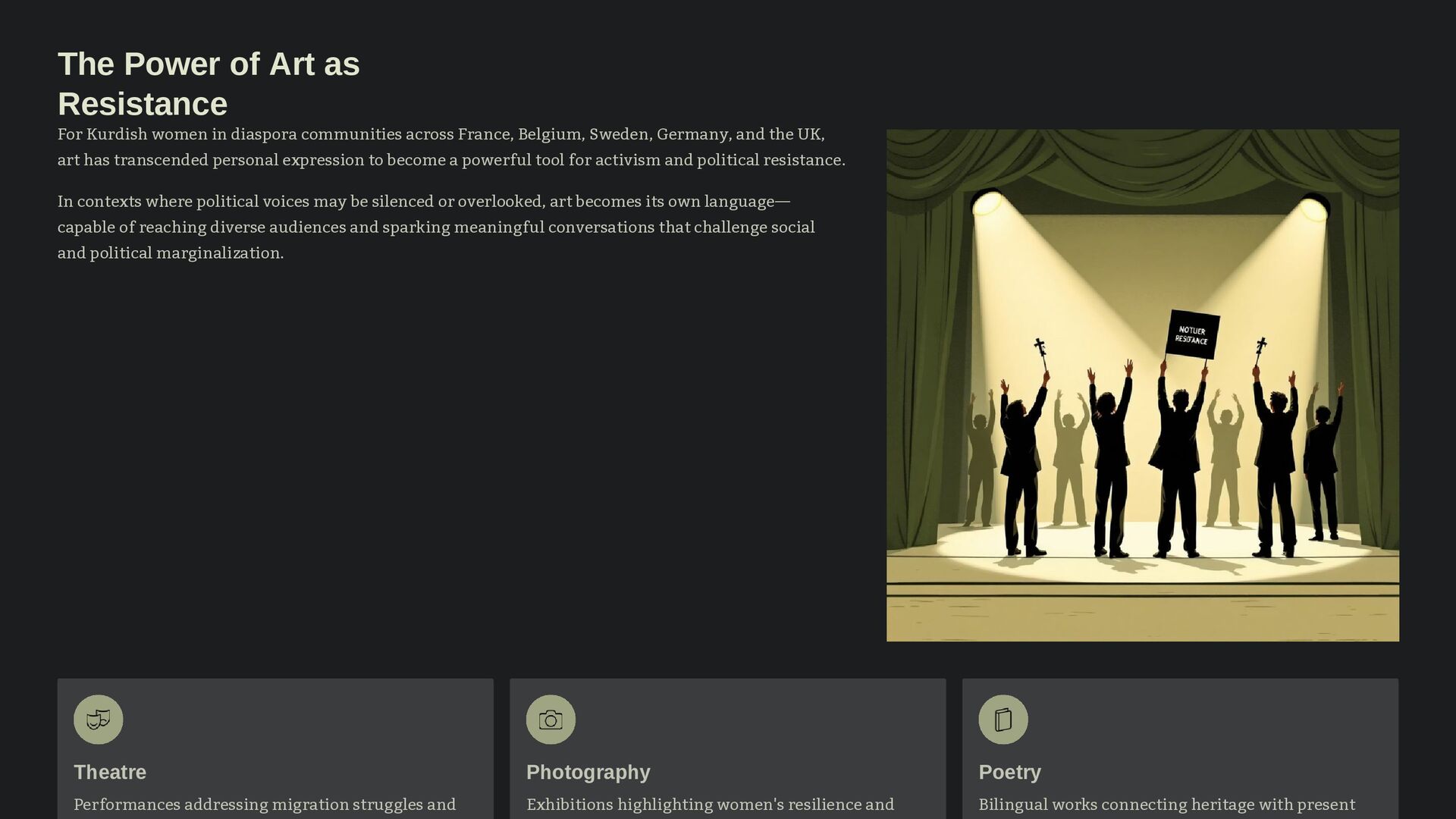 Life in exile often brings silence — but Kurdish women turn that silence into song. This piece explores how migration fuels artistic innovation, inspired by Özlem Belçim Galip’s interdisciplinary work. Kurdish women in Europe are not only preserving traditions but also reshaping them, using creativity to express identity, resist marginalization, and foster solidarity across borders.