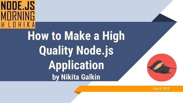 We will start with the question “What is Quality?”. In the answer, we will find several attributes, which will be chapters in this talk. For every attribute, we will talk, how this quality attribute can be improved in a Node.js application, which tools or process can be used for that.