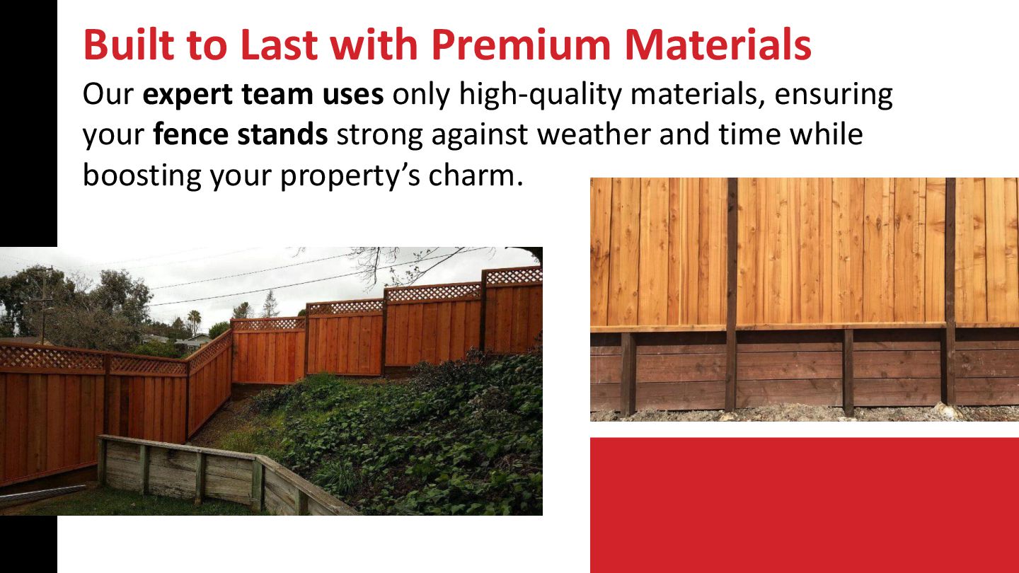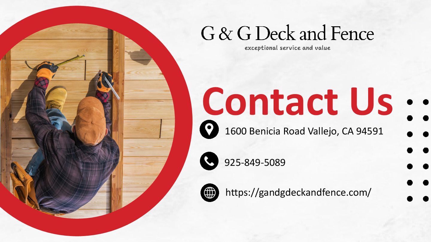 Trust G & G Deck and Fence for top-quality fence installation in Concord, CA. We deliver durable, stylish, and affordable fencing solutions that boost privacy and curb appeal. Get a free estimate from our experienced team today!