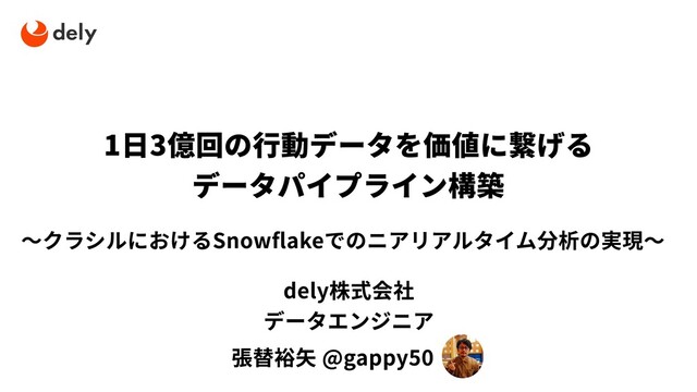 delyではレシピ動画サービス「クラシル」を運営しており、多くの方に使われるサービスになってきました。クラシルでは1日に累計3億回もの操作が行われおり、コンテンツの増加や機能追加に伴い、今後もより多くの行動ログからユーザーへ価値を還元する必要があります。 今回はSnowflakeにて構築したニアリアルタイム分析を可能とするデータパイプラインについてお話します。