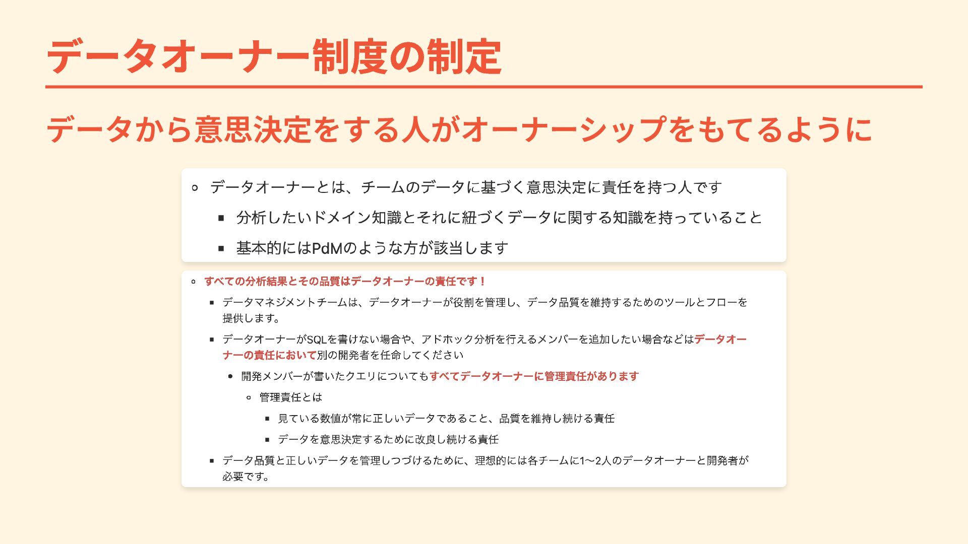 データオーナー制度の制定 データから意思決定をする人がオーナーシップをもてるように