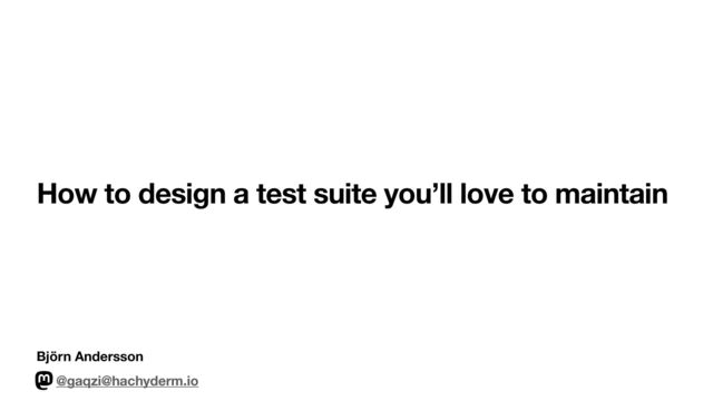 I will share the constraints I put on my test suites that help me maintain them and why they help. We'll look at how to discover when you're breaking these constraints and solutions to make living with the constraints simpler.