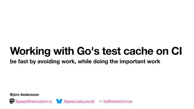 slow • Over 5min per Go version, 10+ minutes total, nothing cached between runs • I needed mikro working with Go 1.24 • Only two versions supported at a time, 1.25 coming in August [July as of writing] • Found caching plug-in for Drone CI • Easy win: Cache GOPATH ✓ • Bigger win: Cache GOCACHE... cut CI time in half! • Pleasant surprise: tests started caching too 🥳 • Go compiler knows test dependencies, skips unchanged tests • Muthu, while reviewing, asked: "What about integration tests?" • Because they might get cached and they depend on code the compiler doesn't know about,