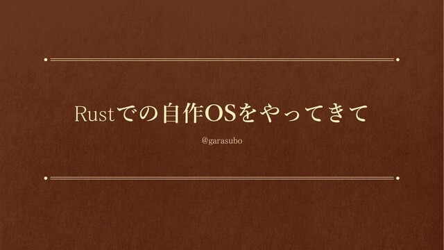 自己紹介 ハンドルネーム:ガラスボー Twitter:@garasubo • 趣味で組込みOSを自作していました • 本業はWeb開発(not Rust)