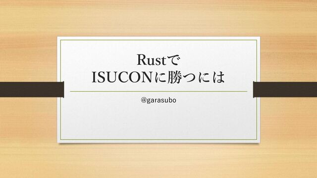 自己紹介 • ID: @garasubo • ISUCON10ではRustで予選通過 • ISUCON11以降では結果を残せず • 普段からRustを書いているのでできればISUCONもRustで勝ちたい