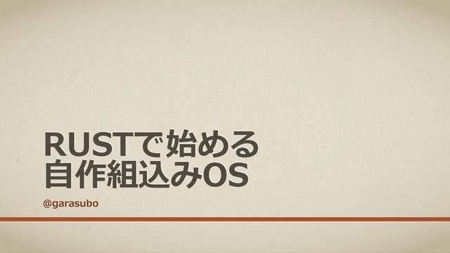自己紹介 • Twitter: @garasubo • 大学院時代:Cortex-A向けの自作ハイパーバイザ開発 • 現在:某企業でWebサービス開発 • 趣味でRustを使ってCortex-M向けの自作OSを開発中
