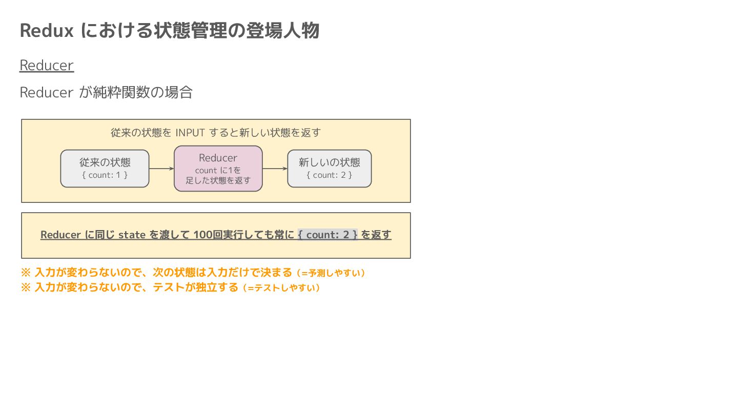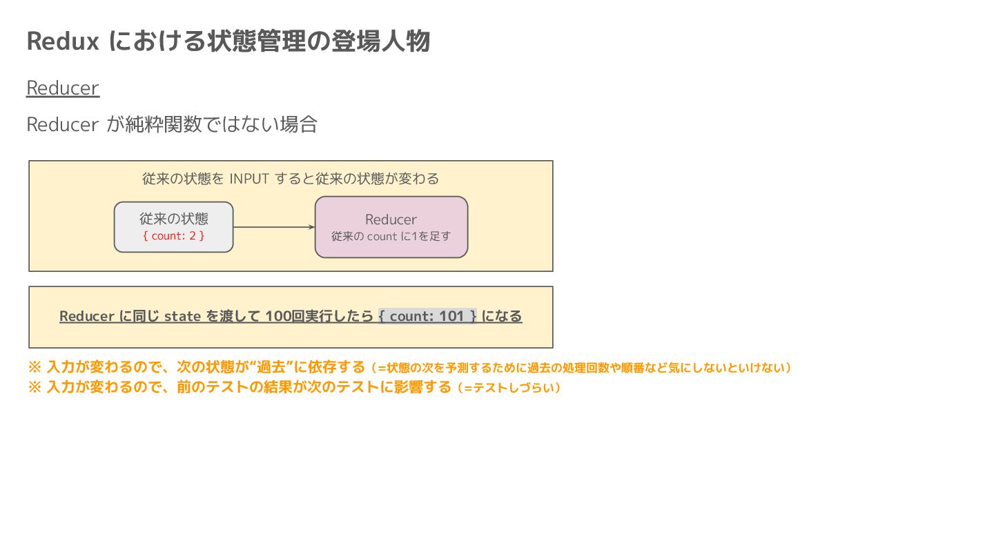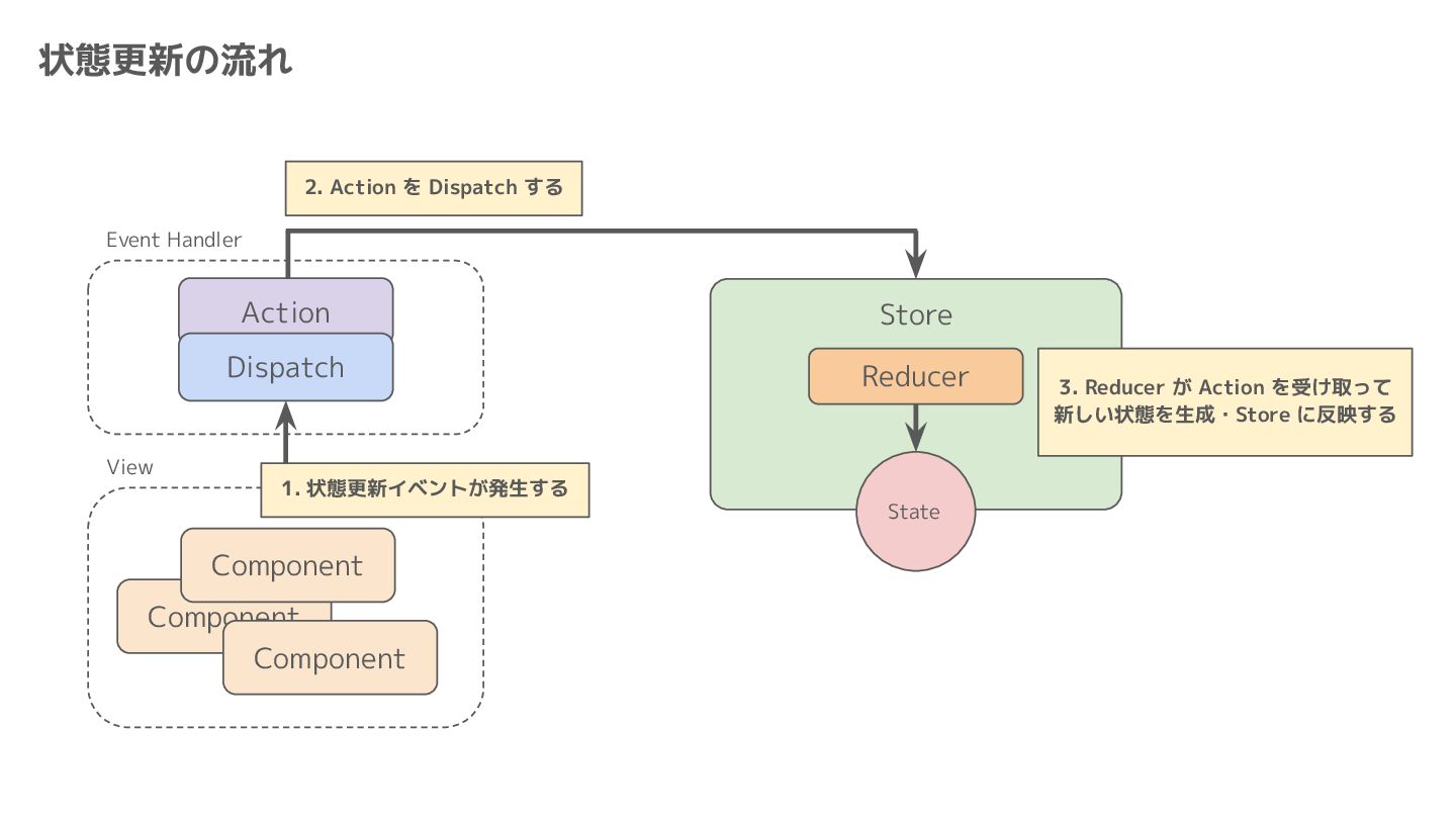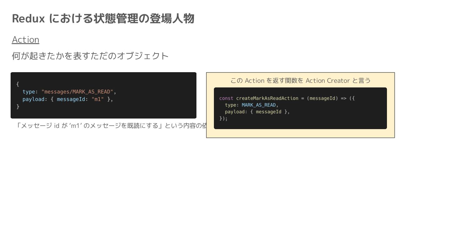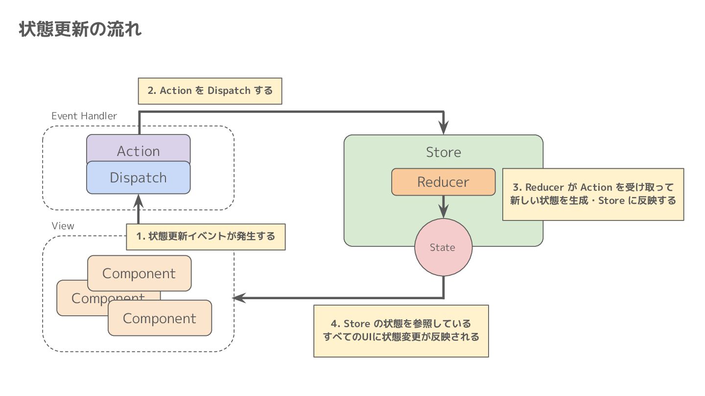 Component Component Component Component Component Component Component Store Front-end Back-end Database request response APIレスポンスのDBのコピー(DBが真実) ❌APIから取得したデータも全部 Store に入れる → 非同期で取得(成功・失敗・ローディング) → 時間が経つと古くなる(再取得が必要) → キャッシュが必要になる可能性有 → … Redux はクライアント状態管理のライブラリな ので、それでサーバー状態をやろうとするとやや こしくなるし、無駄に Store が膨らむ サーバー状態: 真実がDB/APIにあるデータ クライアント状態: 真実がFEにあるデータ