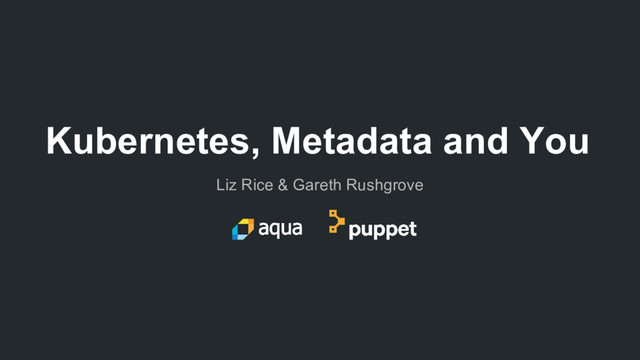 A talk from me and Liz Rice from Aqua Security, all about Kubernetes and Metadata. A bunch of background, details of relevant Kubernetes features, and examples of the kinds of things you can do and problems you can solve building on top of quality metadata.