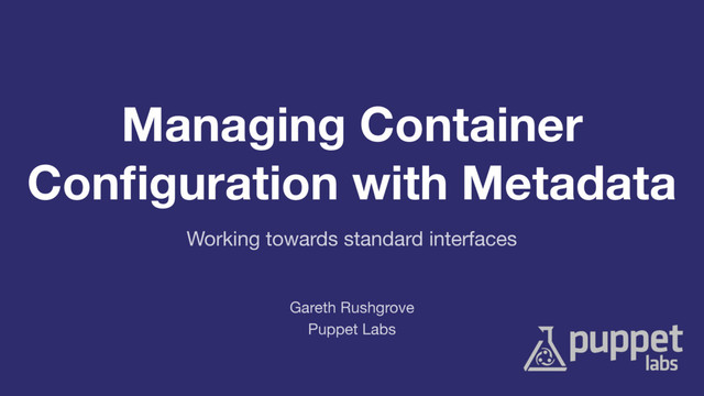Keynote talk at Configuration Management Camp, covering the power of metadata for building operations focused tools around containers. Talk of standards, container APIs and metadata.