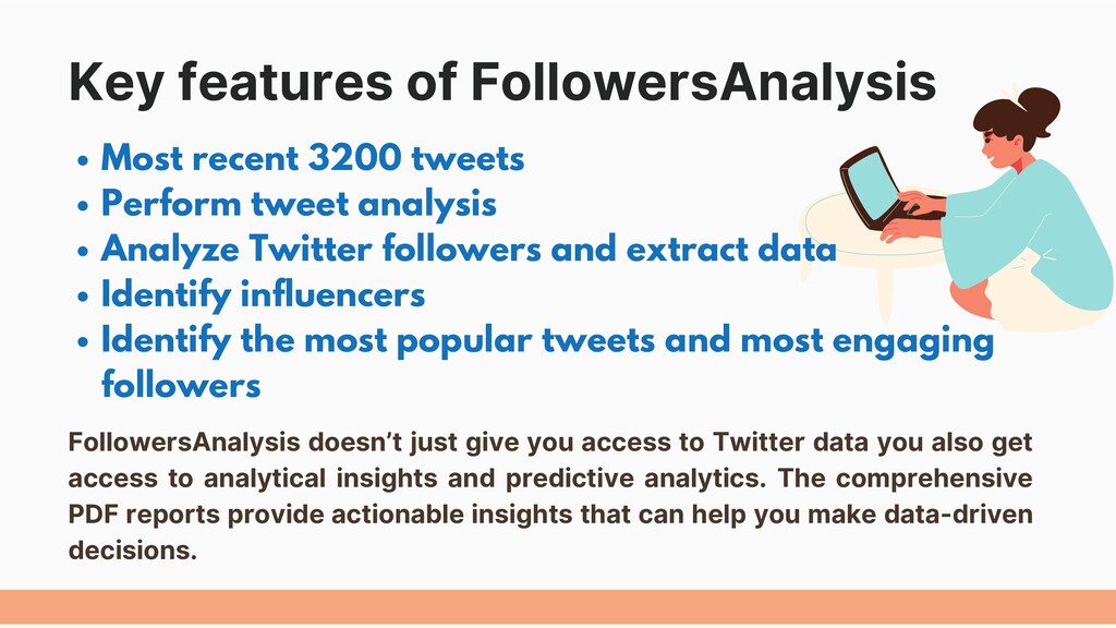FollowersAnalysis is a tool to analyze comprehensive data of Twitter accounts. Apart from tweet details, tweet analysis is also accessible when you download it from here. This tweet analysis report includes the most recent 3200 recent tweets of the user. Other things that you get from this report: