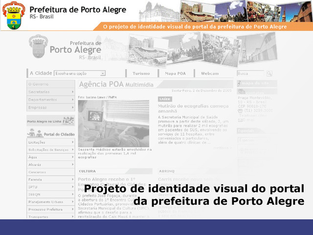 e soluções para Internet, sendo pioneira em muitas iniciativas no meio. Porém a identificação da Prefeitura através de uma marca padronizada e questões como identidade, navegação, usabilidade e até mesmo manutenção das páginas e de conteúdos não estavam contempladas. A partir da contratação de designers na PROCEMPA (julho de 2001), iniciou-se o desenvolvimento dos primeiros projetos voltados a resolução dessas eficiências.