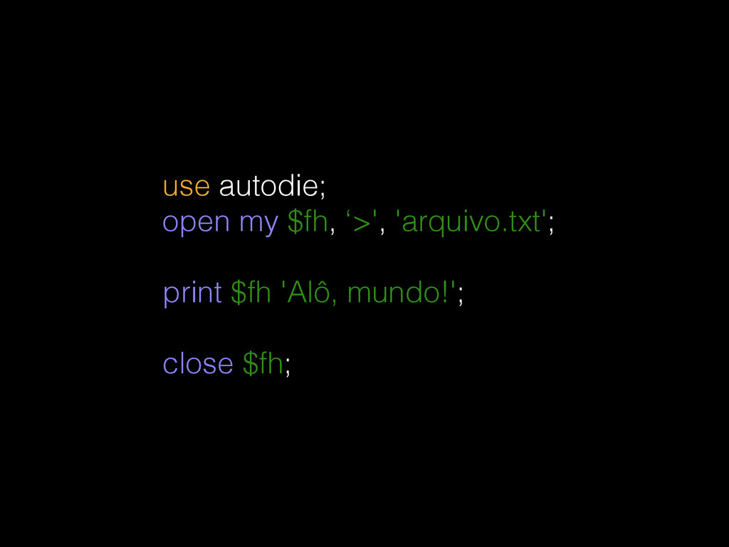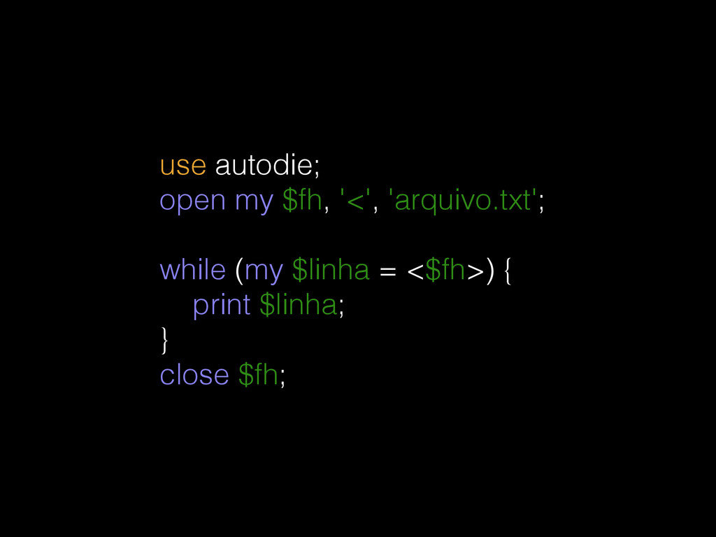8. use autodie; open my $fh, '<', 'arquivo.txt'; ! while (my