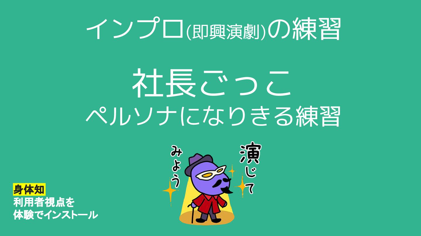 インプロ(即興演劇)の練習 社長ごっこ ペルソナになりきる練習 身体知 利用者視点を 体験でインストール
